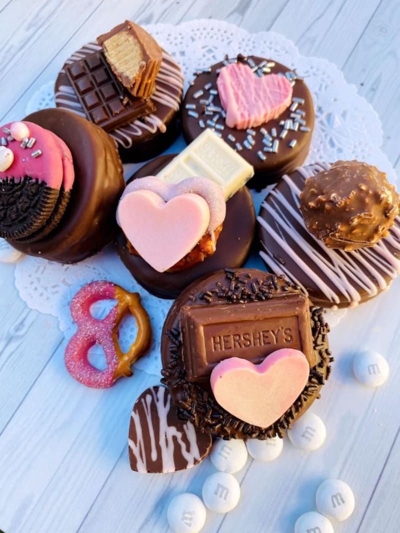 Ahí puedes encargar cajas especiales paraSan Valentín, como la Carlota Love Box ($ 12.990), que son seis alfajores rellenos de dulce de leche, cubiertos de chocolate y con pedacitos de galletas oreo, chocolate Ferrero, Herchey's y M&M.