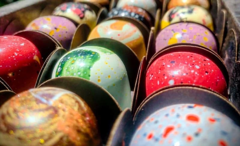Y no solo conquistan con su sabor y calidad, sino también con su presentación, porque son pintados a mano, con pigmentos vegetales disueltos en manteca de cacao, esponja y aerosol, lo que les da ese carácter único e irrepetible.