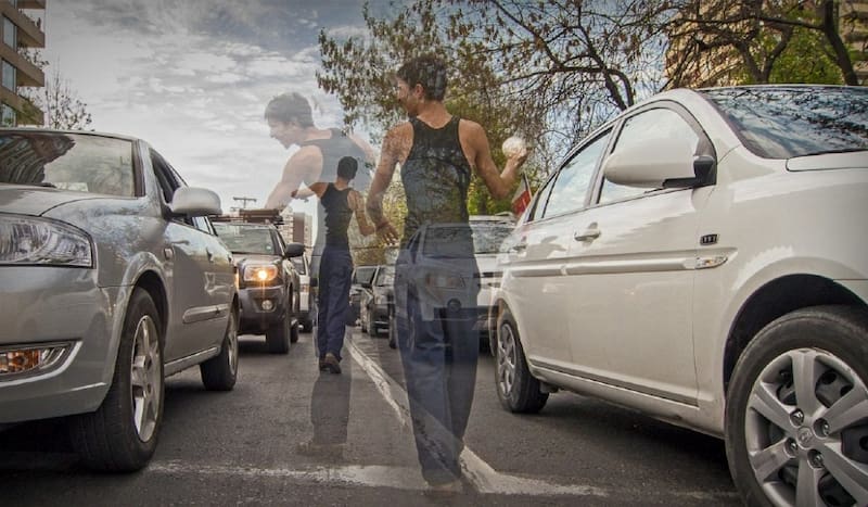 Lo mismo con esos artistas de esquina que hacen sus actos con la rapidez de la luz roja del semáforo y desaparecen del paisaje urbano como si nunca hubieran estado ahí.