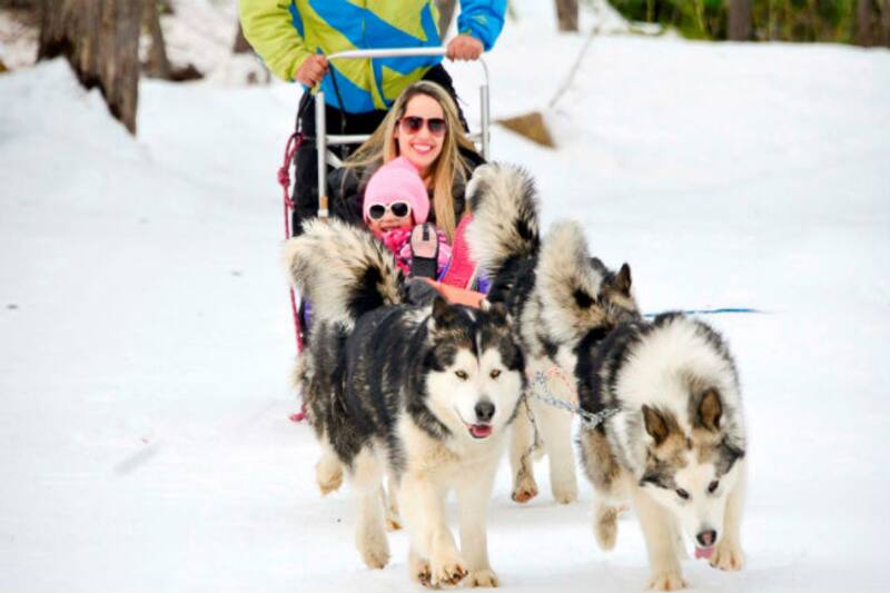 Si los esquís y el snowboard no son lo suyo, a un costado del snowpark hay otro panorama ideal para disfrutar con los hijos: un paseo en trineo llevado por perros y conducido por un experto, para que usted sólo se dedique a disfrutar el recorrido. En el trineo caben cómodamente un adulto y un niño (los menores siempre deben ir acompañados), el paseo dura entre 10 y 15 minutos y se hace en un terreno con subidas y bajadas, rodeado siempre de árboles y vistas a los volcanes. Cuesta $ 15.000 y conviene agendarlo temprano en la mañana, ya que las horas se llenan rápido.