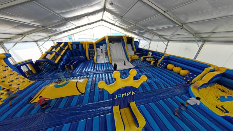 JUMPIN ON TOUR se destaca por ser el parque inflable más grande y seguro de la ciudad, extendiéndose sobre más de 750 metros cuadrados.