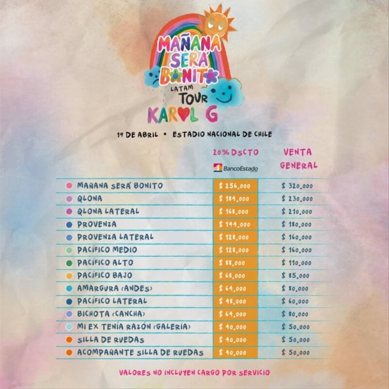 Puedes revisar a continuación los precios y ubicaciones para el show de Karol G en Chile 2024.