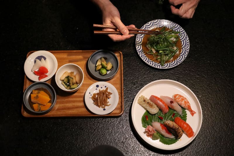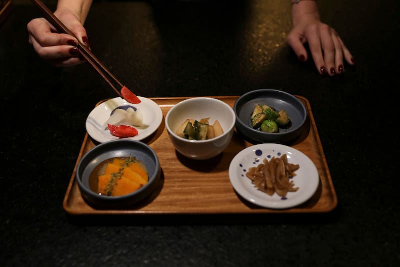 Al partir tu visita a Kōnā Corner a tu mesa llegará fukusai, pequeños platos de verduras cocidas, crudas y encurtidas, que van cambiando según la estación y son la punta de lanza, como el pan en occidente.