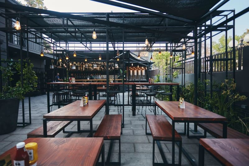 Tiene dos terrazas, una larga barra, una carta con platos alemanes y opciones veganas y todas las cervezas de esta marca en formato schop.