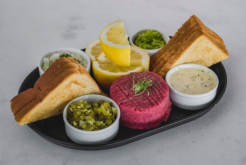 Como el crudo Kunstmann ($ 15.900), ideal para partir, con 280 grs de carne cruda molida, pepinillos, cebolla, pasta de ají verde, la salsa de crudo de la casa y pan de molde tostado.