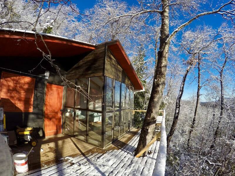 Airbnb en el sur ofrece lugares únicos para arrendar, como esta acogedora cabaña frente a la montaña en el Maule, rodeada de un bosque nativo de robles. Si buscas la desconexión total, este rincón es para ti.