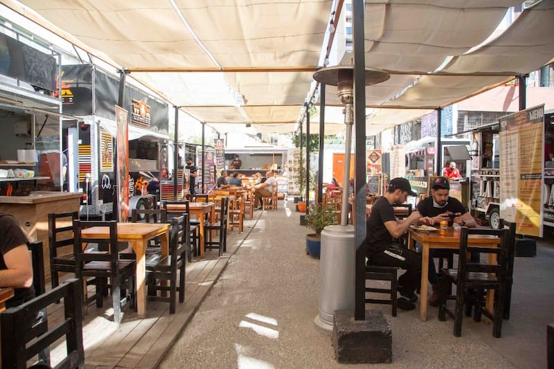 En Catedral casi esquina con San Martín, en pleno centro de Santiago, está Food Park Tepeyac, un patio con carros de comida donde puedes probar desde pizzas hasta los coloridos helados de AK Heladería.