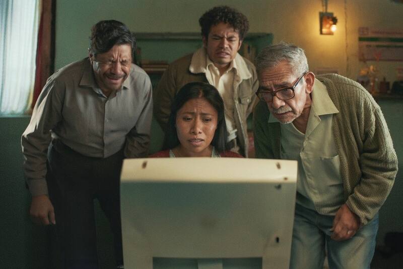 Entre los que también se cuentan la encargada del correo y el único computador del pueblo, Anita (Yalitza Aparicio, Roma), y Benjamín (Julio Casado), el encargado del “banco” local.