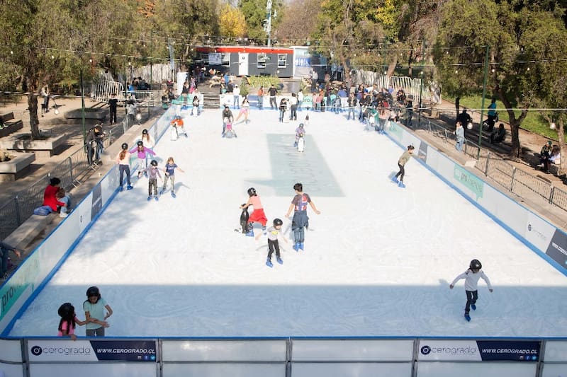 En Santiago, por ejemplo, se inauguraron dos: una en Providencia, justo fuera del Café Literario del parque Bustamante; y otra en Las Condes, en el parque Araucano. (Lee más sobre estas pistas de hielo acá).