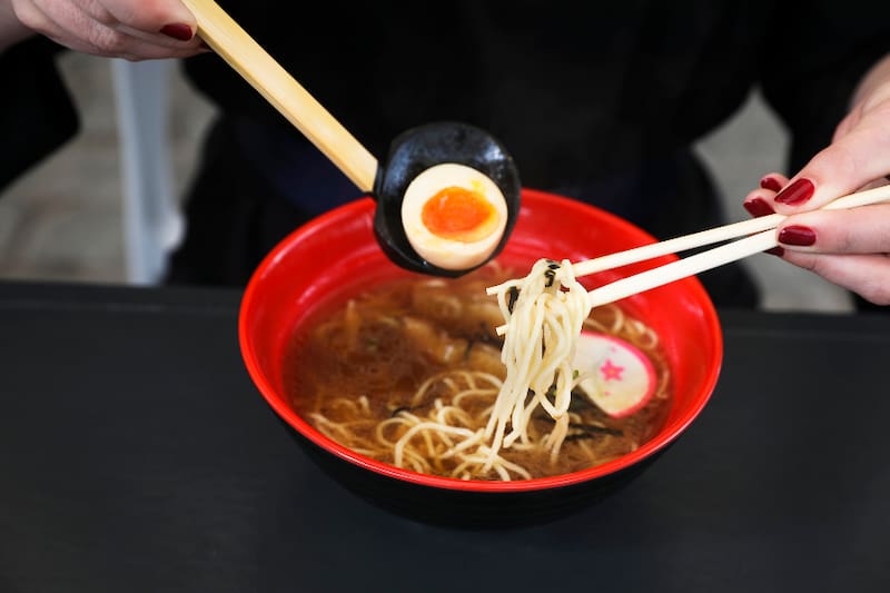 Es más, la gracia de este lugar, es que ahí encontrarás variedades de ramen, como el Miso ($ 9.300), el más pedido del local, de caldo denso de pollo, con pasta de soya y carne molida, pasta gruesa y huevo, que puedes pedir con cerdo, además de wakame y narutomaki.