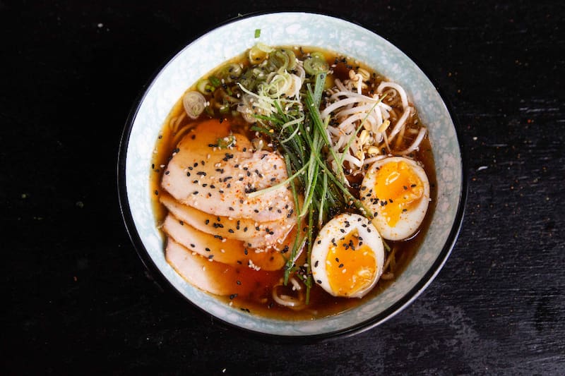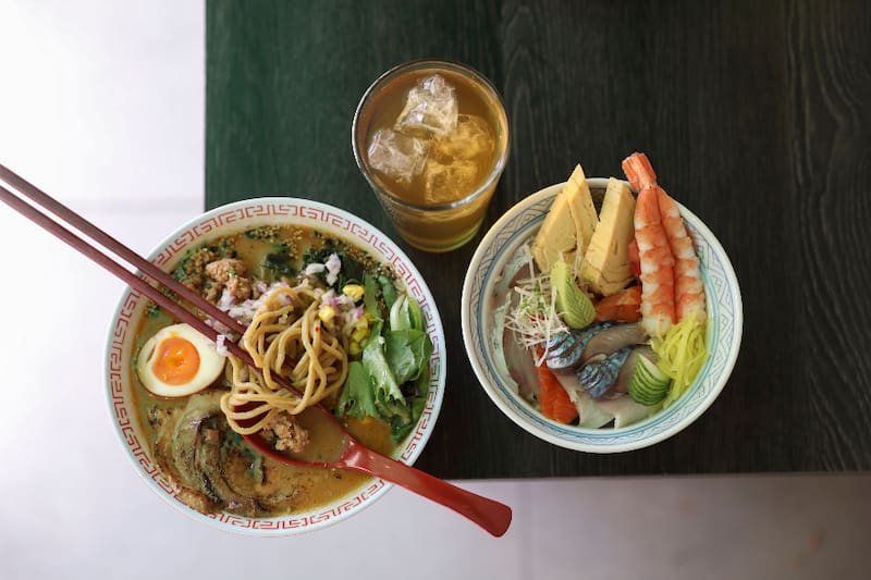 Entre ellos ramen, como el shoyu ramen ($ 11.900), de un caldo hecho en base a soya, camarón, pollo, alga kombu y katsuobushi -que es bonito seco-, más fideos de trigo, chashu, cerdo, ajitsuke tamago -que es el huevo al estilo japonés- y naruto hecho de pasta de pescado y cebollín.