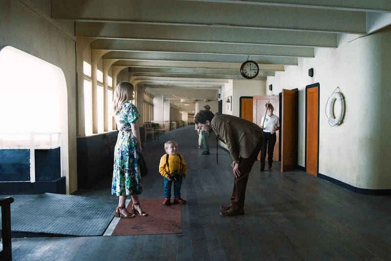 Con lo que David (Wil Coban), su esposa Gwen (Nell Hudson) y su hija Jackie (Florrie May Wilkinson) se sientan junto a importantes pasajeros como Fred Astaire (Wesley Alfvin).