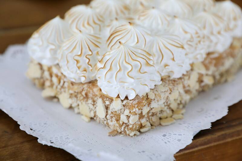 También te puedes tentar con sus lingotes, tortas más pequeñas, para ocho personas, como la Mil Hoja ($ 12.000), de manjar merengue; o la de panqueque manjar y huevo moll ($ 12.000).
