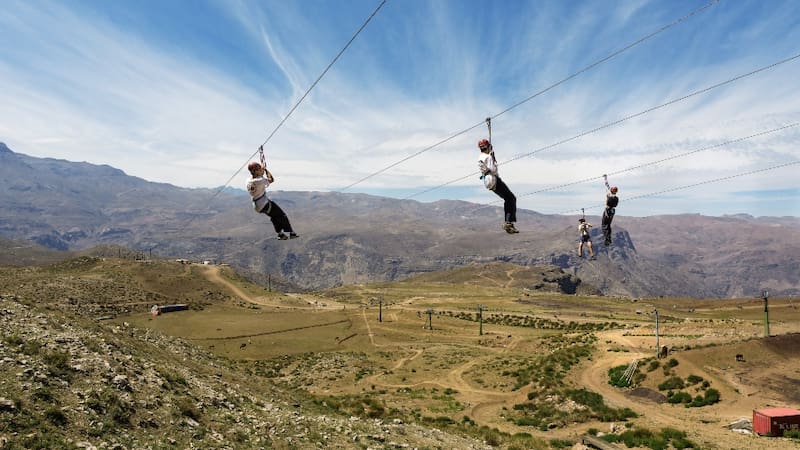 Se trata de dos líneas paralelas, una de 180 y otra de 540 metros de largo, que aseguran la adrenalina y panorámicas increíbles del paisaje de la cordillera de Los Andes.