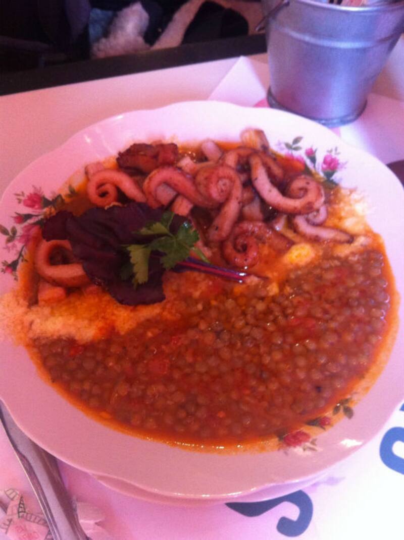 “Aparte de una clientela muy diversa, en las fuentes de soda se suman los sabores que Chile ha ido copiando, el lomito alemán, los tallarines italianos, más la cocina de casa. Es, por definición, un lugar donde te sientes cómodo”, explica Mellado, mientras cucharea uno de los platos emblemáticos de Las Cabras, unas lentejas blanditas con malaya cortada fina y crocante ($ 7.500).