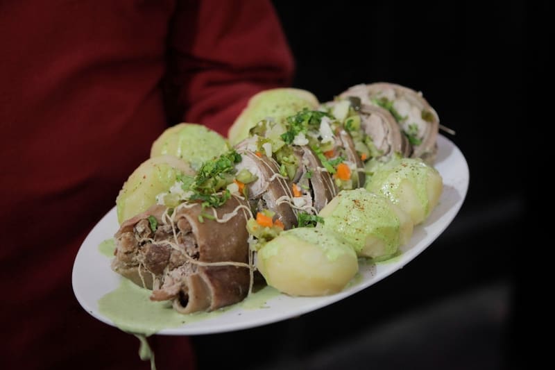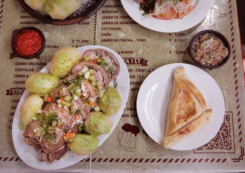 Como su insuperable arrollado, hecho en el local, de tierna pulpa de cerdo, que puedes pedir en media porción ($ 10.000) o entero ($ 17.000), acompañado de papas cocidas con salsa verde de la casa o papas fritas ($ 18.000).