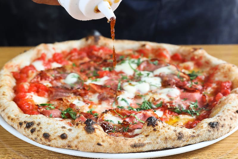 Más aún, las pizzas las puedes pedir durante todo el día, cosa de tentarte con la Margarita Fior de Latte ($ 12.500), con pomodoro, mozzarella fresca, albahaca y parmesano; o la Longaniza y cebolla ($ 12.500), con longanizas de Chillán, mozzarella fresca, ciboulette, cebollas y champiñones asados.