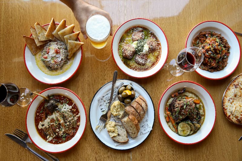 Además de una carta acotada, de opciones con salsa para untar el pancito, que funcionan de 12 a 4 PM y de 7 PM a 10 PM, como las Albóndigas ($ 11.000), que son de vacuno y cerdo, con tuco, ricota, pesto y parmesano; o la Lasaña bolognesa ($ 10.000), bien casera.