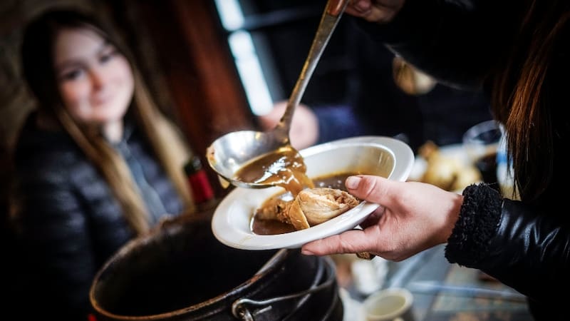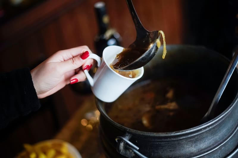Además, viene con casi un kilo de papas fritas y vasitos para tomar el caldo.