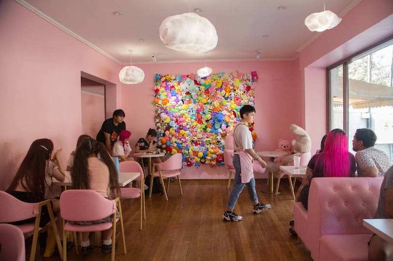 Y en que en esta cafetería de Providencia todo es completamente rosado y kawaii, la palabra japonesa que, a grandes rasgos, engloba todo lo tierno y bonito.