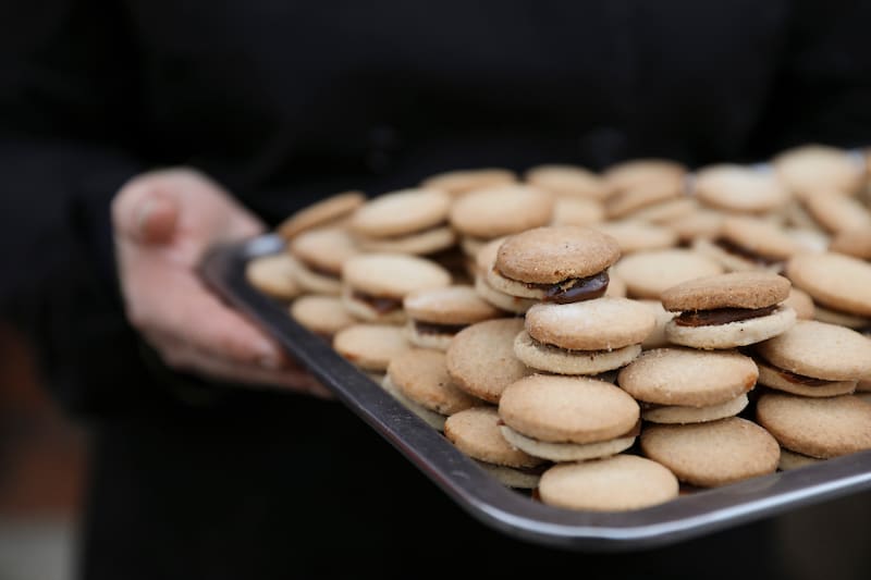 También opciones dulces a cargo de Patricia, como chilenitos ($ 400), de fina hojarasca cargados de manjar; alfajores ($ 400) de masa un tanto más grueso y kuchen ($ 5.500), de frutillas y arándanos, por ejemplo.