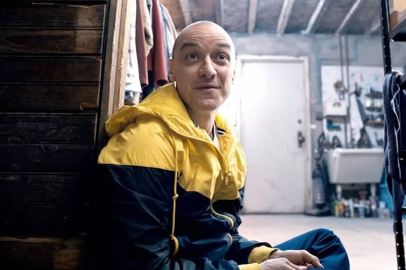 Su captor primero aparece como el obsesivo Dennis (James McAvoy), aunque poco después, y ante las miradas atónitas de las muchachas, el mismo hombre se presenta como la femenina Patricia y, más tarde, como el niño Hedwig.