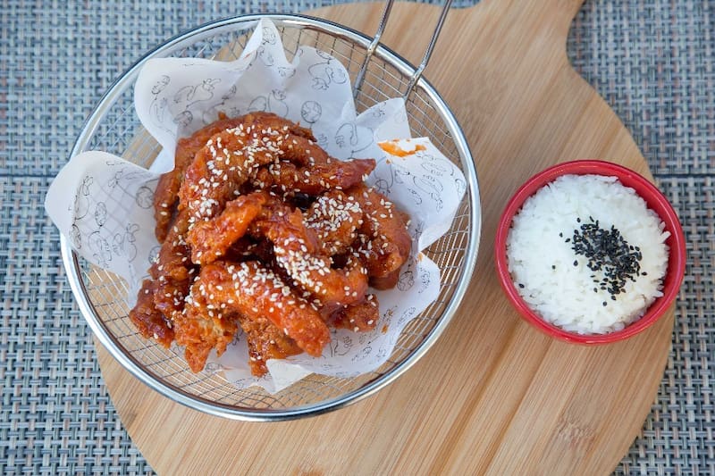 Como las “Korean sticky fried chicken” ($ 6.200), que van bañadas en una salsa deliciosamente picante y agridulce, con semillas de sésamo, tostadas.