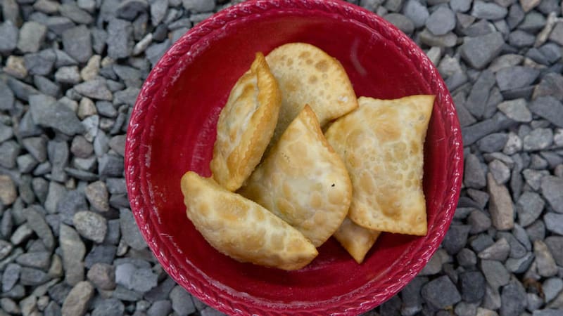 También hay empanadas fritas con pino de carne y de mariscos como navajuelas.
