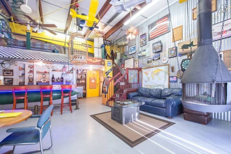 Es un loft hecho dentro de un hangar de aviones. Es decir, podrás dormir en un garage de avionetas ambientado para todos los fanáticos de los motores.
