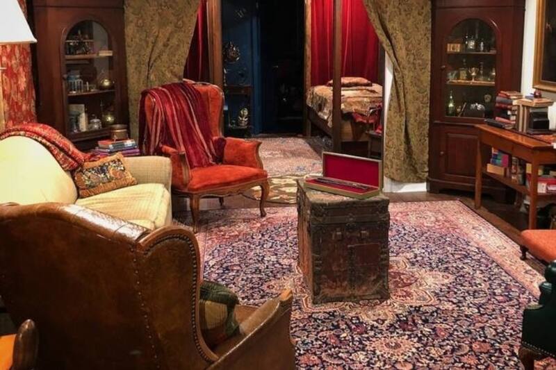 Tiene un hermoso dormitorio con muchas reliquias y elementos antiguos, ideal para los amantes del siglo pasado. ¿Lo mejor? Una de las paredes es un gran estante con libros de todo tipo, desde los más clásicos hasta los más nuevos.
