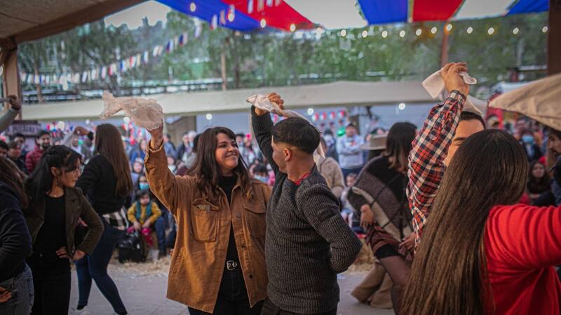 Ahí encontrarás puestos de comida chilena, grupos folclóricos, shows en vivo, juegos típicos, obras de teatro, clases y competencias de cueca y juegos inflables para niños, entre otras actividades.