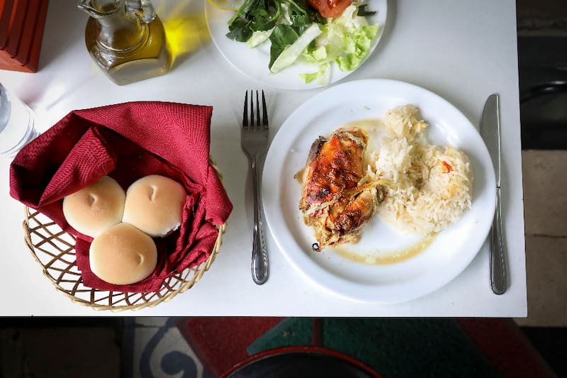 También hay menú de almuerzo ($ 5.000), que de lunes a viernes, entre la 1 PM y 4 PM, incluye un plato de fondo, entrada y pan con pebre entrada.