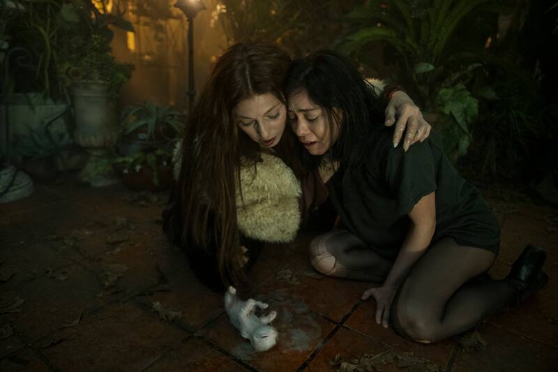 Choqueada, la joven recurre a una extraña mujer que conoció en una fiesta para que le haga una maldición al productor a cambio de un pago. Aunqueno es en dinero, sino que en gatitos que salen repentinamente de la boca de la chica. En el primero de los inquietantes y sorpresivos momentos que son parte del relato, junto a una enredadera que crece metros en horas o una tortilla de oreja humana.