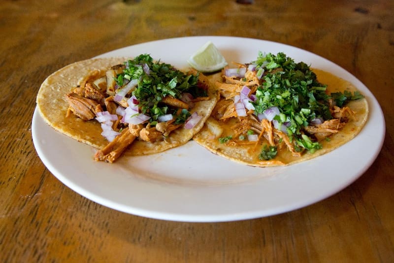 Tiene varios recomendables, como el "Pastor" ($ 2.990), con cerdo marinado, piña asada cebolla morada y cilantro; o el "Porteño" ($ 3.790), con camarones ecuatorianos al ajo y vino blanco, además de frijoles refritos, palta y cebolla dorada.
