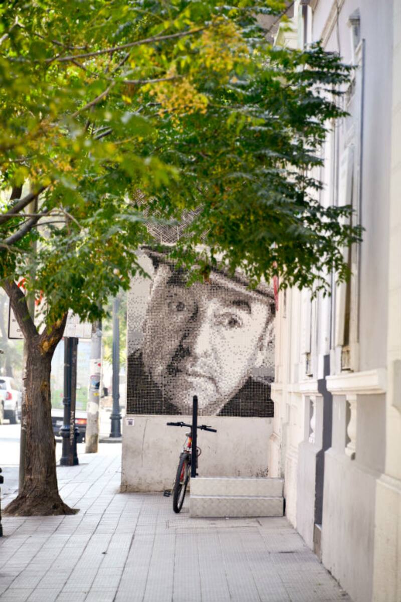 Es así que la ruta sigue hacia uno que ya tiene su impronta en este sentido: el Barrio Bellavista. Ahí un nuevo cuadro de Pixel Art aparece, esta vez es un retrato de Pablo Neruda. Lo puede ubicar la calle Constitución, a unos pasos de Dardignac, en un pequeño muro que mira hacia la calle Bellavista. En él, Pixel Art crea un efecto en el cual usa mosaicos de varios colores, pero a la distancia el efecto visual hace que se vea una imagen en blanco y negro.
