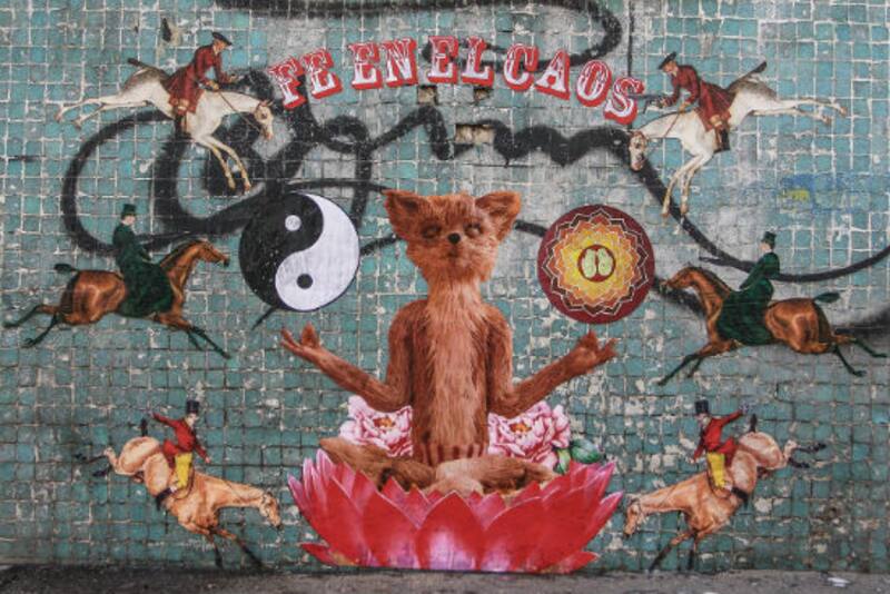 De regreso al centro La cada vez más bullente zona que va desde el sector que rodea al Museo de Bellas Artes hasta el barrio Lastarria, también cada vez conoce nuevos trabajos en sus muros. Ya es bastante reconocido los dos murales que rodean la estación de Metro Bellas Artes, confeccionados en diciembre de 2013 por Inti Castro. Tómese un tiempo entre la vorágine del ingreso a la estación y y vea esa pareja de Equecos (esas tradicionales figuras que llaman a la abundancia), con elementos de la cultura andina.