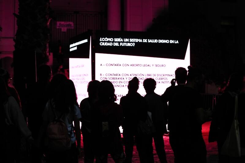 "La idea es que la gente que participa se junte en grupos, deliberen y respondan a las preguntas que se le presentan para proyectar un futuro en una ciudad del futuro", explican Lastesis sobre su más reciente intervención.