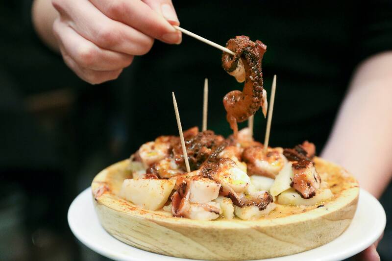 Además del pulpo a la gallega ($ 12.500), que son cortes de pulpo blandísimo, sobre láminas de papa cocidas en caldo de pulpo, con un toque de pimentón de la vera y aceite de oliva.