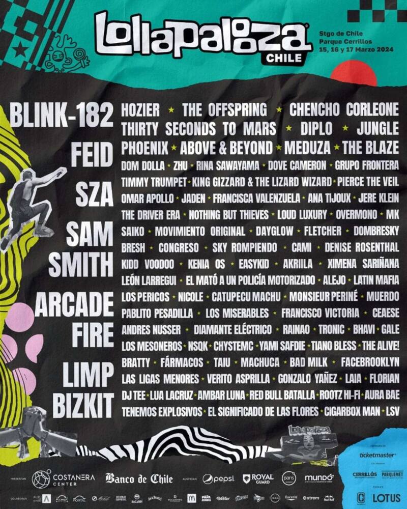 El festival ya tiene su cartel, el que encabezan Blink-182, SZA, Sam Smith, Arcade Fire y Limp Bizkit y Feid. Revísalo acá.