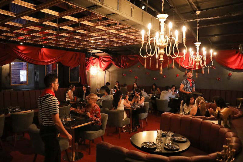Así, lo primero que verás es una gran carpa de circo, que toma un matiz completamente distinto cuando anochece, con salones interiores con lámparas de lágrimas, inspirados en lo que fue Tickets, de Albert Adrià, en Barcelona, o Salvaje, el restaurante de cocina fusión japonesa y show en Madrid.