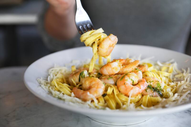 Además, en este local se suma una amplia carta de vinos, cocteles de autor y opciones depastas, como los fetuccini ($ 6.980), con una buena cantidad de camarones.