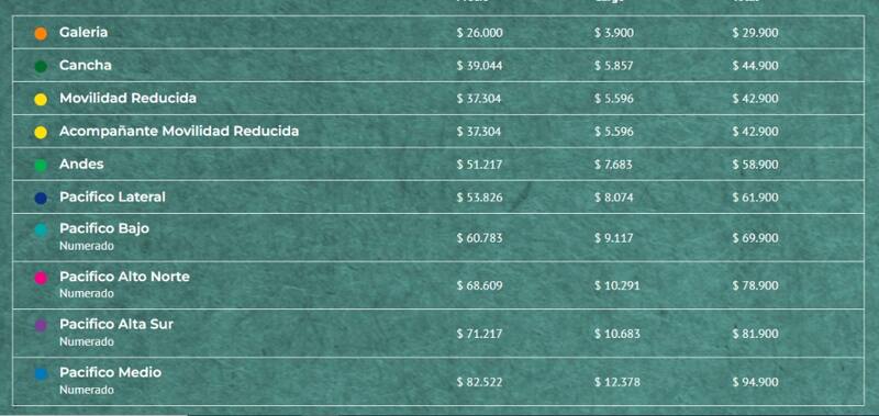 En la siguientes gráficas puedes ver el detalle de las ubicaciones para ver a Los Bunkers en el Estadio Nacional y los precios respectivos de cada una de ellas.