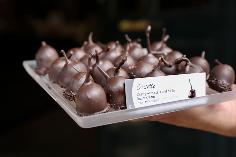 ¿Unos recomendados? Los Cerisette, que es la cereza entera, con el tallo y hasta el cuesco, bañada en chocolate negro y rellena con licor. ¡Realmente adictivas!