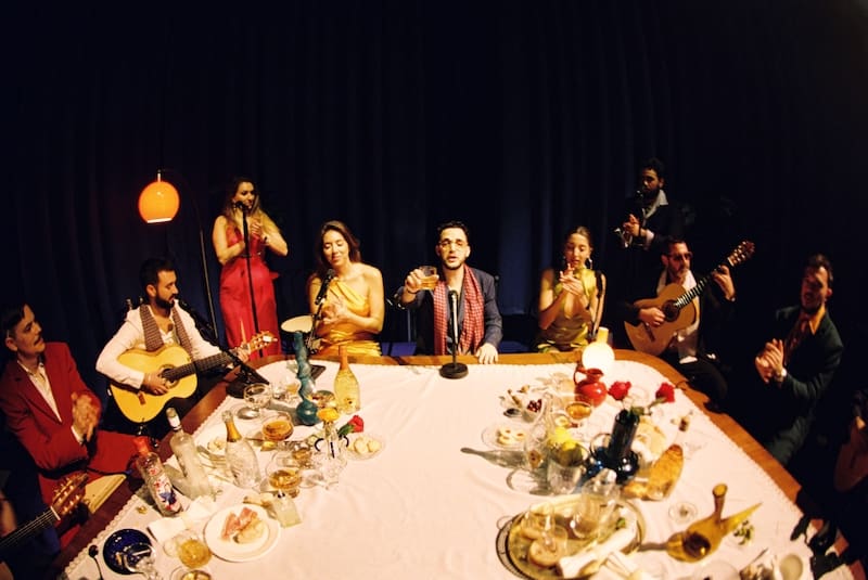 Sobre el escenario del Movistar Arena, presentó una cuidada puesta en escena, que recrea un tablao flamenco, con varios músicos invitados.