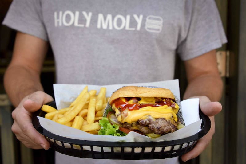 Imposible dejar fuera de las recomendaciones del Día de la Hamburguesa a las de Holy Moly, esa que hacen exclamar “¡Santo Cielo!” cuando las pruebas.