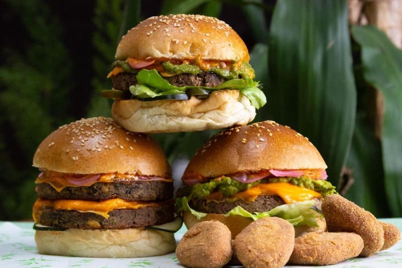Además, sus hamburguesas están hechas con más de 25 ingredientes, como betarraga, papa, frijoles, legumbres, aceite de coco, cilantro perejil y tomillo, por ejemplo, con las que juega combinando texturas y sabores.