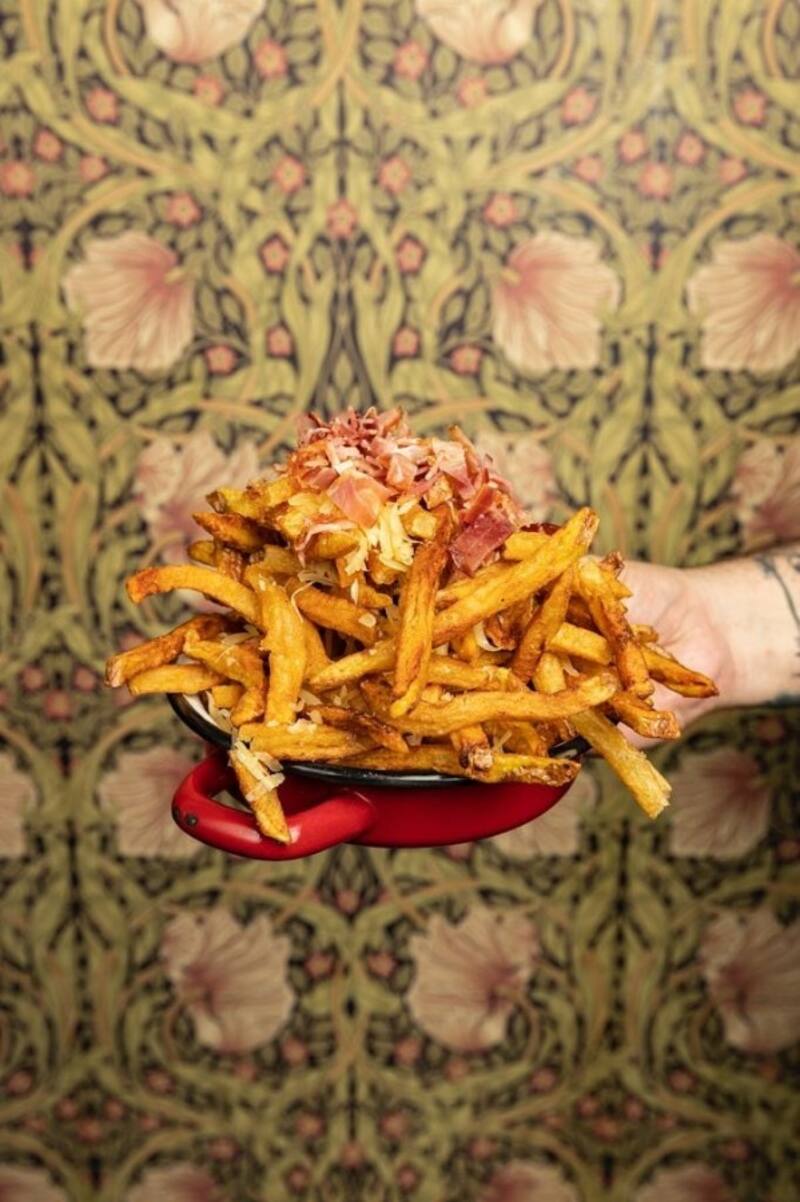 Prueba las Bacon fries ($6.900, para compartir), papas cortadas en la casa, con tocino y queso reggian.