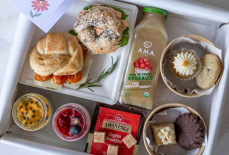 De hecho, tiene varias opciones especiales de desayuno para el Día de la Madre, como uno que por $ 32.000 lleva a su casa una caja llena de delicias.