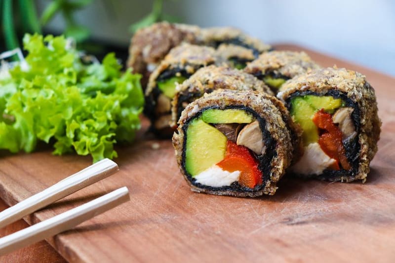 Ahora ahí también encuentras versiones de rolls keto, como el flexitariano ($ 4.990), uno sin arroz, envuelto en tempura que tiene nori, VGN cream cheese, seitán, camote, cebollín y salsa acevichada.
