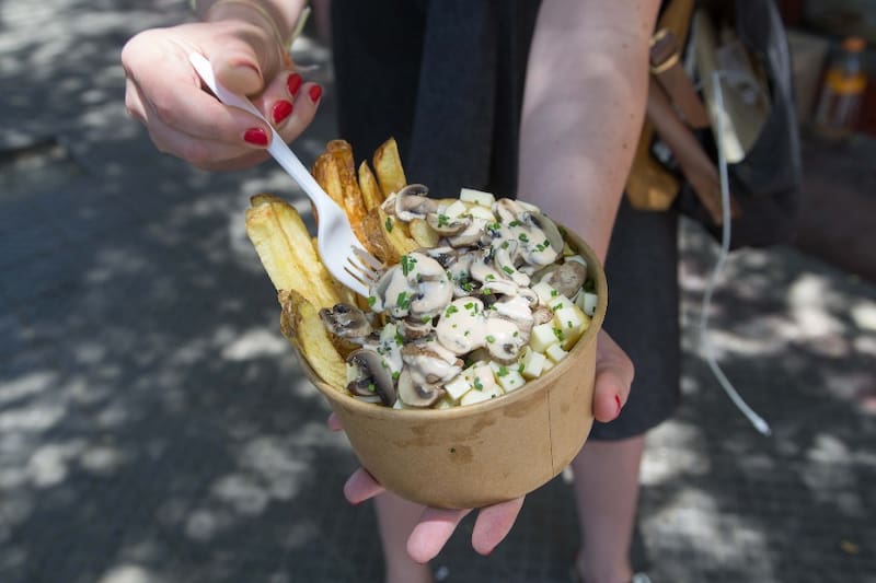 Otra opción es pedir alguna de las combinaciones ya armadas, como las poutine de carne ($ 2.590), que vienen con queso mozzarella y carne mechada casera; o las poutine tradicional ($ 1.990) que son sólo las papitas con queso mozzarella o vegano si prefieres.